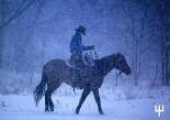 WORK IS NEVER DONE - Pitchfork cowboy, Dick Sayers, heads home after a long,